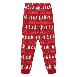 Comfortable slim fit two-piece Moomin Christmas pyjamas. The feminine fit shirt has long sleeves and a V-neckline with snap buttons. The pants have long legs and elastic waistband. Made from cotton.