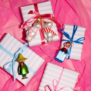 Moomintroll is 11 cm tall and comes in a beautiful box. He stands upright on his own, making him perfect for both the mantelpiece and the Christmas tree. One of ten Moomin Christmas ornaments made by HEIM. Note: All ornaments are unique! The finish may vary slightly from ornament to ornament, as they are hand-painted. Hand-painted with eco-friendly paint.Material: Glass and cotton. Size: 15 x 7 cm.