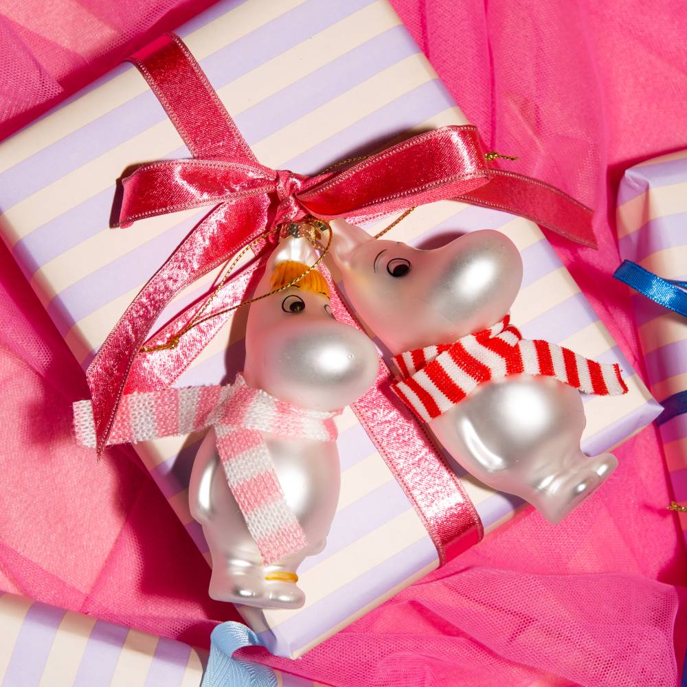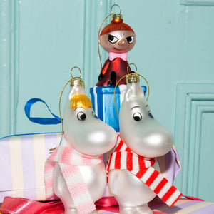 Moomintroll is the main character with a positive outlook on life. With a natural ability to find the good in any situation, he approaches every new experience with enthusiasm and an open mind. As a Christmas ornament, he is simply dressed in a red-striped knitted scarf.