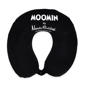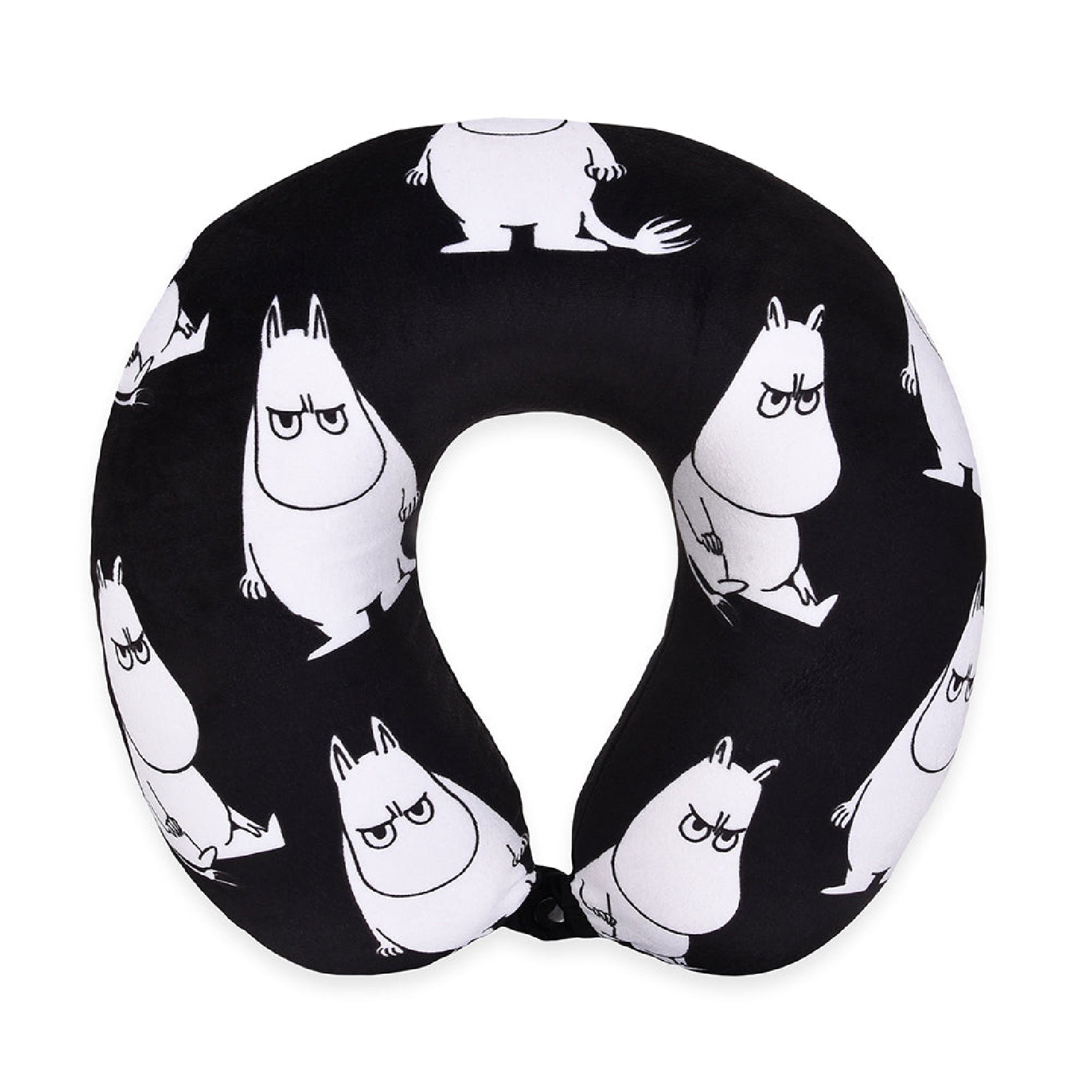 Super soft black neckpillow for travelling featuring angry Moomintroll. Memory foam and soft cover with digital print. Handwash only.