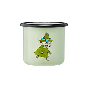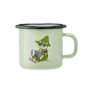 Snufkin green mug 2,5dl. Muurla’s enamelware consists of a carbon steel core that carries a double-coating of enamel. Being durable and light, enamel products are perfect for both indoor and outdoor use. Dishwasher safe. Do not use in microwave oven. Size 2,5 dl.