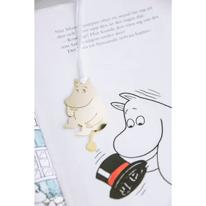 Moomintroll is a loyal friend who loves nature and is always eager for new adventures with his companions. Though he can be sensitive, he is also brave when the situation requires it. Metal sitting Moomintroll gold coloured bookmark with a green ribbon.