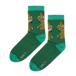 These green socks features Snufkin. Ribbed cuffs keep the socks at the right height. The socks are in size EU 36-42 (UK 4-8), but are also suitable for smaller and larger feet. The socks are made of a soft and flexible cotton-polyester-elastane combination. Take care of the socks by washing them at 30°C.