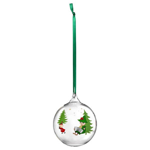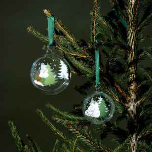 Decorate your home with a pinch of Moominvalley's Christmas magic! The Moomin glass baubles are perfect for hanging from the Christmas tree or in the window. Hand made. Satin ribbon included. Diameter 9cm.