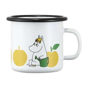 Join Moomintroll and his friends for a joyful day of apple picking. Moomin by Muurla Joyful Apples collection brings a fresh, fruity feel that brightens up any moment. Moomin enamel mug in size of 2,5 dl. Muurla's enamelware consists of a carbon steel core that carries a double coating of enamel. Being durable and light, enamel products are perfect for both indoor and outdoor use. Diswasher safe. Do not use in microwave oven.