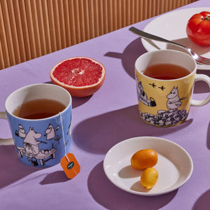 Arabia's Moomin mug Yellow from 1990, now available in special 0.4 L size! The original artwork for the mug is from the comic strip #18 Moomin and the Golden Tail (1958) and the novels Moominsummer Madness (1954) and Moominpappa at Sea (1965).