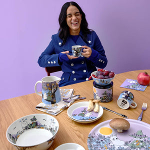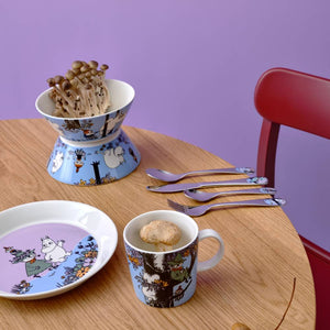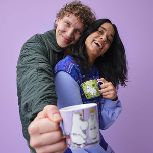 The Friends Forever items bring back those delightful childhood memories of climbing trees and embarking on shared adventures. Among the lush tree foliage and blooming meadows, you’ll find Moomintroll, Snufkin, and Little My—three lifelong friends with colourful personalities and a special bond. The cheerful illustrations are inspired by Tove and her brother Lars Jansson’s comic The Conscientious Moomin from 1958. In the story, the Moomins set out to live thoughtfully and responsibly but soon realise that the true joy in life comes from doing what makes you happy together with friends and family. This story unfolds through various joyful scenes featuring our three friends hanging out and creating unforgettable memories.The Friends Forever mug brings back childhood memories: tree-climbing and adventures with lifelong friends. Snufkin is back in Moominvalley. Moomintroll cannot wait to meet him. Moomintroll and Little My follow a trail of clues Snufkin has hidden. They lead to him perched in a tree.