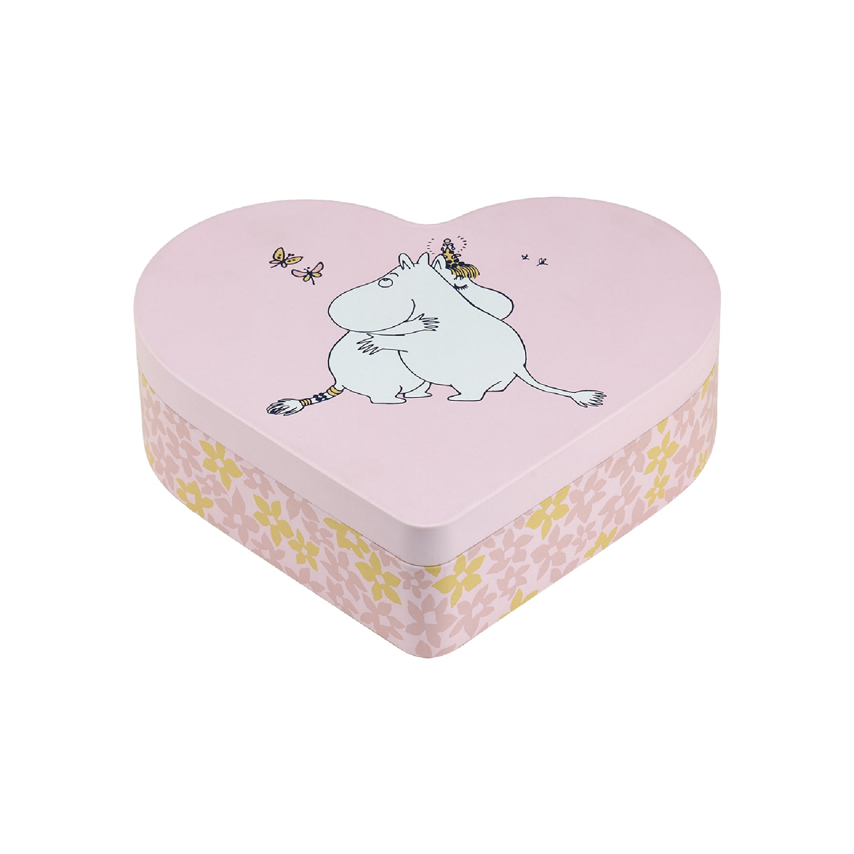 This heart-shaped tin features a beautiful floral pattern on the sides and a charming illustration of Moomintroll and Snorkmaiden sharing a hug on the lid. Fill it with treats, little treasures, or give it as a heartfelt gift to someone special.