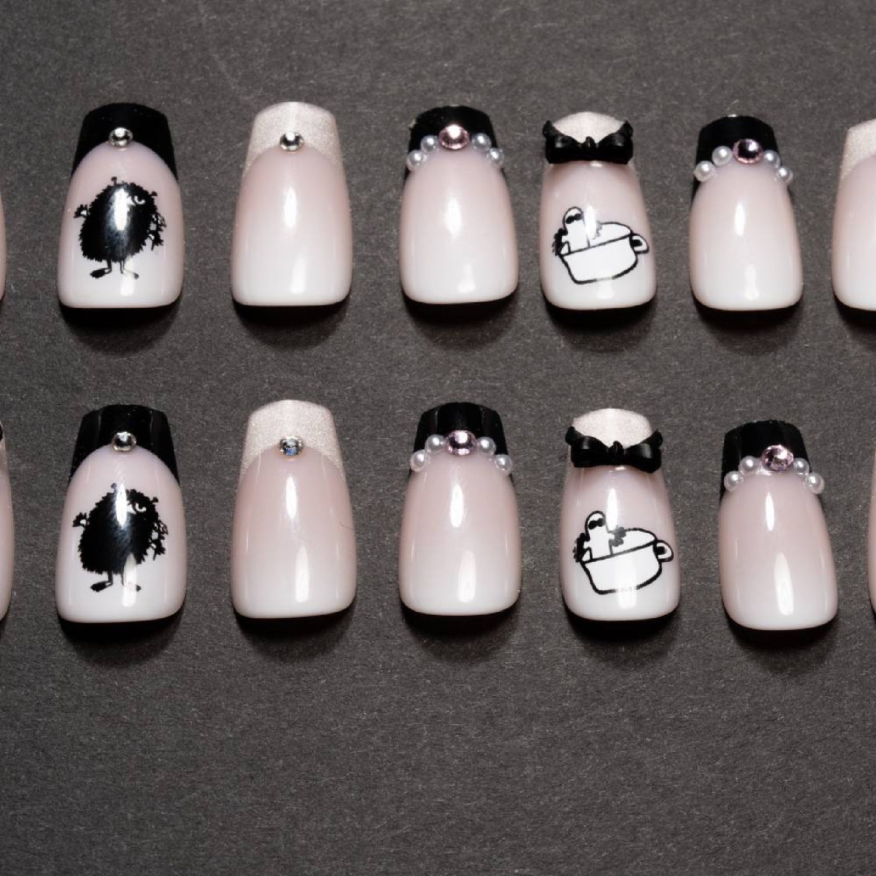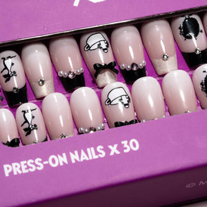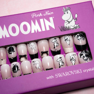 Add a little Moomin glamour with this stylish Moomin press-on nail gift set featuring light pink nails with different lovely black details.