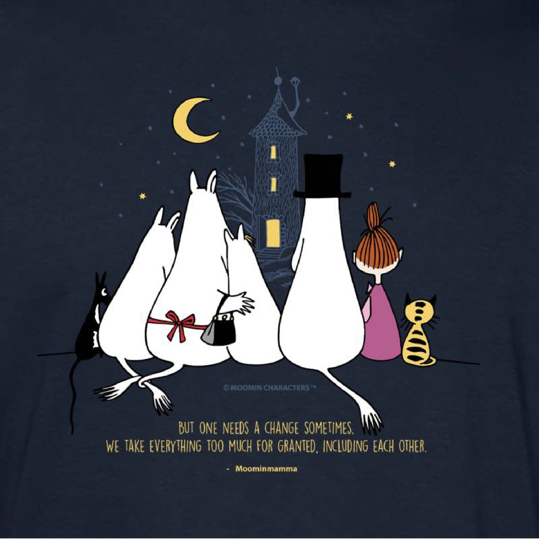"But one needs a change sometimes. We take everything too much for granted. Including each other" Moominmamma's inspirational quote is a nice reminder to appreciate what you have. The atmospheric illustration of the Moomin family star gazing together at night will bring a smile to your face.