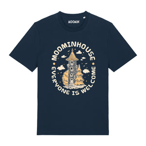 Dress to impress with this cool navy blue high quality, organic fashion-cut t-shirt with a print of the Moominhouse to the front. The modernised, perfect-fitting unisex Moomin t-shirt, with 180gsm 100% organic cotton compact yarn fabric, provides the smoothest printing surface for decoration and features a deep and vibrant colour palette. Modern medium fit with set-in sleeve. 1x1 rib at neck collar. Inside back neck tape in self-fabric. Twin-needle topstitch at sleeve cuff and hem. Printed Moomin back neck label.
