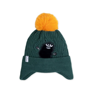 Super soft and warm kids winter beanie in dark green and white with Stinky perfect for cold days. The beanie is fleece lined, and it has a yellow fluffy pom-pom. Fits most children 4-12 years old. Material: Acrylic.