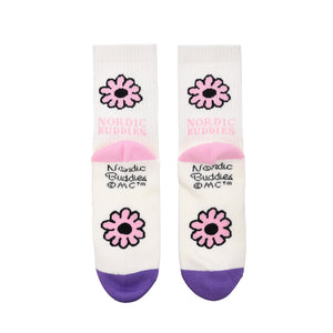 The sock collection gets a facelift with retro and sports socks featuring colourful graphics and Moomin characters, along with vibrant embroidery socks. Lovely white Little My socks! Size: One size fits most EU 36-42 / UK 4-8. Material: 75% Cotton / 23% Polyester / 2% Elasthane. Wash in 30°C.
