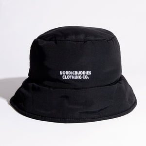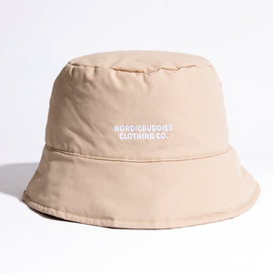 Keep your head warm during cold spells with this stylish and cool puffer bucket hat. Designed for colder weather, this water-repellent hat features a padded, "puffer" style exterior and a soft fleece lining to keep you warm. One-size-fits-most. Circumference: 59cm. Choose between a black or a beige version.