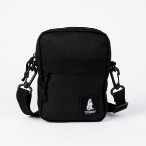 A cool black cross body bag from Nordicbuddies featuring a grumpy Moomintroll. The bag is perfect for storing small items, such as keys, phone or wallet. Small hidden pocket at the front that is closed with a zipper. Material: 100% Polyester. Care instructions: Hand wash. Size: 14 x 20 cm.