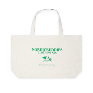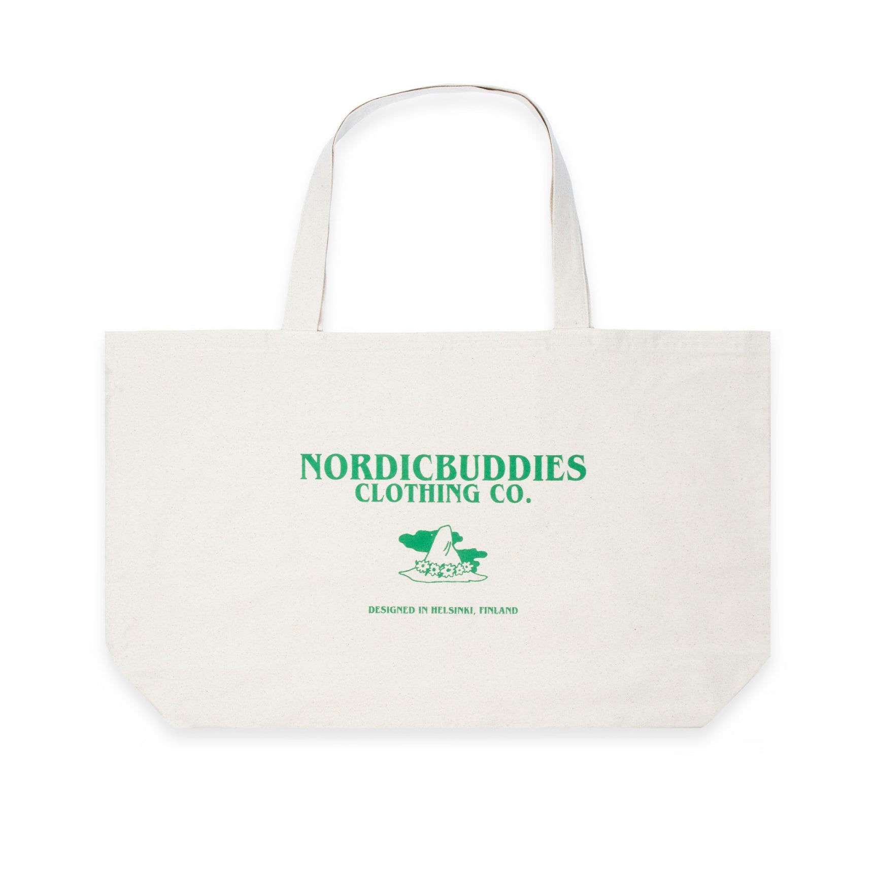 Off white XL tote bag from Nordicbuddies, which has an illustration of Snufkin wandering and a Moomin by Nordicbuddies logo on the back. Great tote bag for carrying groceries back home! Inside there is a zipped pocket. The bag is produced ethically under Fair Wear control and manufactured in a factory that uses wind and solar power in production. Carbon Trust and Organic Textile Certification. Material: 100% organic heavy cotton. Classic style. Size: 65 x 41 cm.