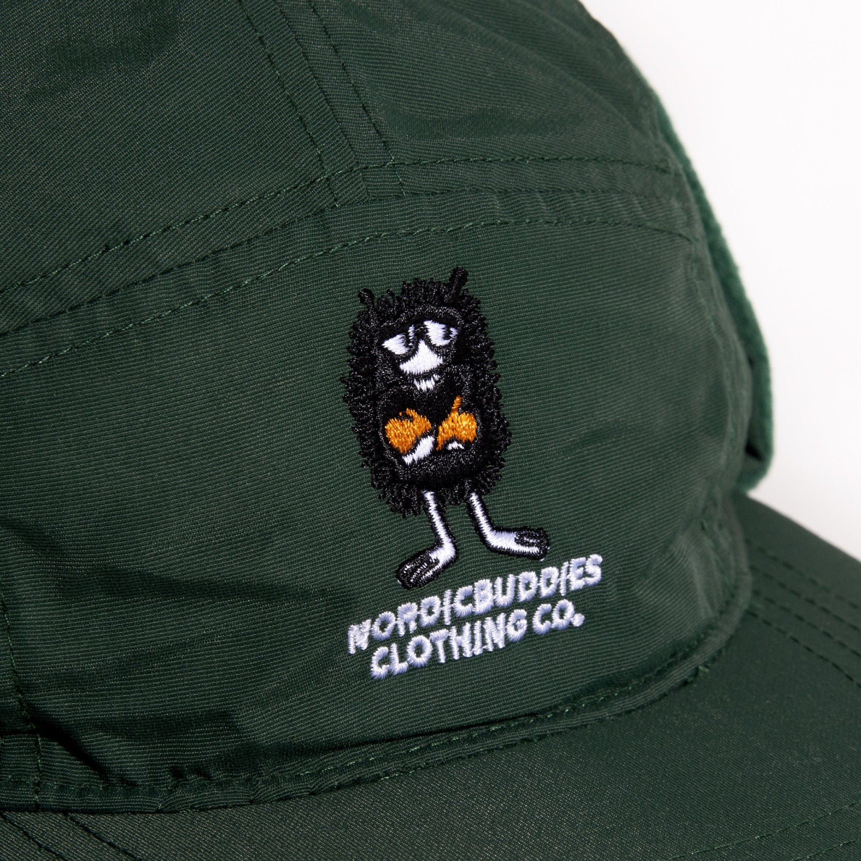 Stay warm during winter with this relaxed and modern-fit winter cap, in contrast to the traditional "dad cap" style. A button-up ear flap design adds a functional element and a retro look as well as keeping your ears warm. An adjustable strap at the back allows for a customizable and comfortable fit for most adults. It is constructed from 100% nylon, making it water-repellent. Circumference 57 cm.