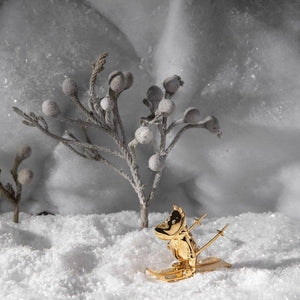 Beautiful skiing Moomintroll figurine from Skultuna, made from gold-colored plated steel. Height: 65 mm. The Skultuna x Moomin series contains some of the most loved Moomin characters that Tove Jansson created, including Moomintroll, Snorkmaiden, Little My, Moominpappa, Moominmamma, Sniff, Snufkin & Stinky.