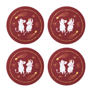 Beautiful red four Moomin Arabia coasters. Material: plywood. Wipe with a soft, dry cloth. Add Moomin magic to the holiday season with beautiful Moomin coasters, packaged in a festive gift box!