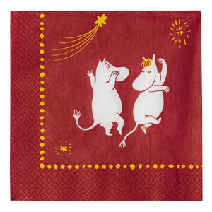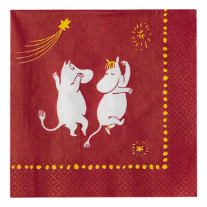 Beautiful red Moomin Arabia -napkins 33x33cm. Material: paper. Made in Finland. Add a dash of Moomin magic into the holiday season with beautiful Moomin paper napkins!