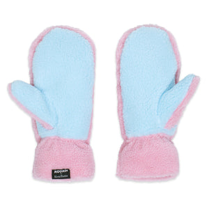 Keep your hands warm when being outdoor during winter with these super soft and warm fluffy mittens. The mittens have a soft fleece lining, and a cute pink and light blue colour, and a Moomintroll adventuring patch. One size fits most, length of mitten is 29 cm., width 10.5 cm. Materials: Recycled polyester and acrylic.