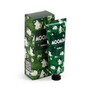 Keep your hands moist and lush with Moomin moisturising hand cream. Choose between a jasmin or a vanilla scented scented hand cream in a lovely green packaging. The hand cream is a treat for your hands and as a gift for someone special.. The hand cream is palm oil free, cruelty free and vegan. The tube contains 75ml.