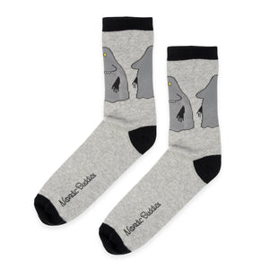 The Groke is most known for the chilling presence that surrounds her, which can freeze anything she touches or stands on. She can even extinguish fires simply by getting too close. These new grey and black socks featuring The Groke will keep your feet warm and stylish. One size fits most 40-45 UK 6-10. Material: 75% Cotton 23% Polyester 2% Elastane