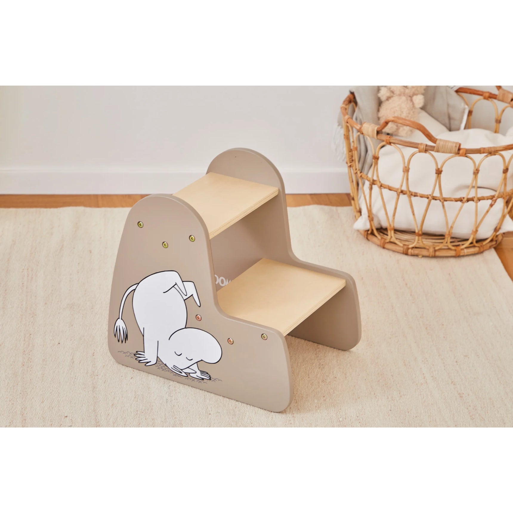 Moomin step stool is a delightful and functional addition to any child-centric space. Crafted with care, it features the beloved Moomintroll on the side, making it an engaging tool for young learners. The sturdy two-step construction promotes independence, allowing children to reach new heights safely while fostering their development and learning. Perfect for both home and educational environments, this step stool is a testament to quality, creativity, and child-friendly design. Weight limit 50 kg.