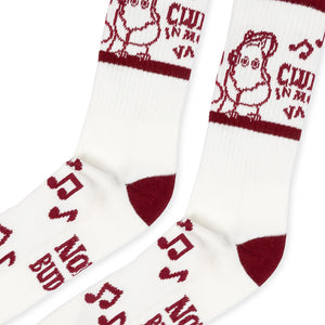 White and red coloured socks Moomintroll size EU 40-45. Material 60% Cotton, 33% Polyester, 4% Nylon, 2% Elastane, 1% Elastodiene. Delicate wash 30 degrees.
