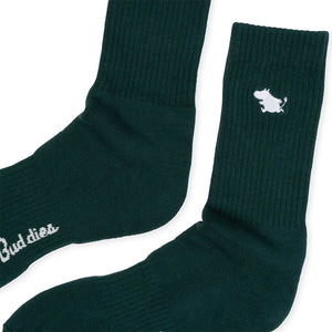 Green socks Moomintroll, size EU 40-45. Material: 60% Cotton, 33% Polyester, 4% Nylon 2% Elastane, 1% Elastodiene. Delicate wash 30 degrees.