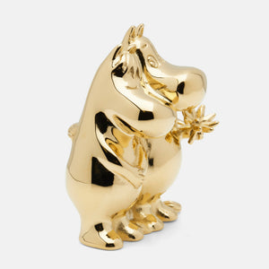 Moomintroll is a dreamer and a thinker. When Snorkmaiden becomes his girlfriend, Moomintroll learns that love sometimes makes you feel wistful and even downright sad. They like each other a lot and love hanging out together. Material: Gold-plated 316L high-grade steel. Measurements: Height 53 mm.